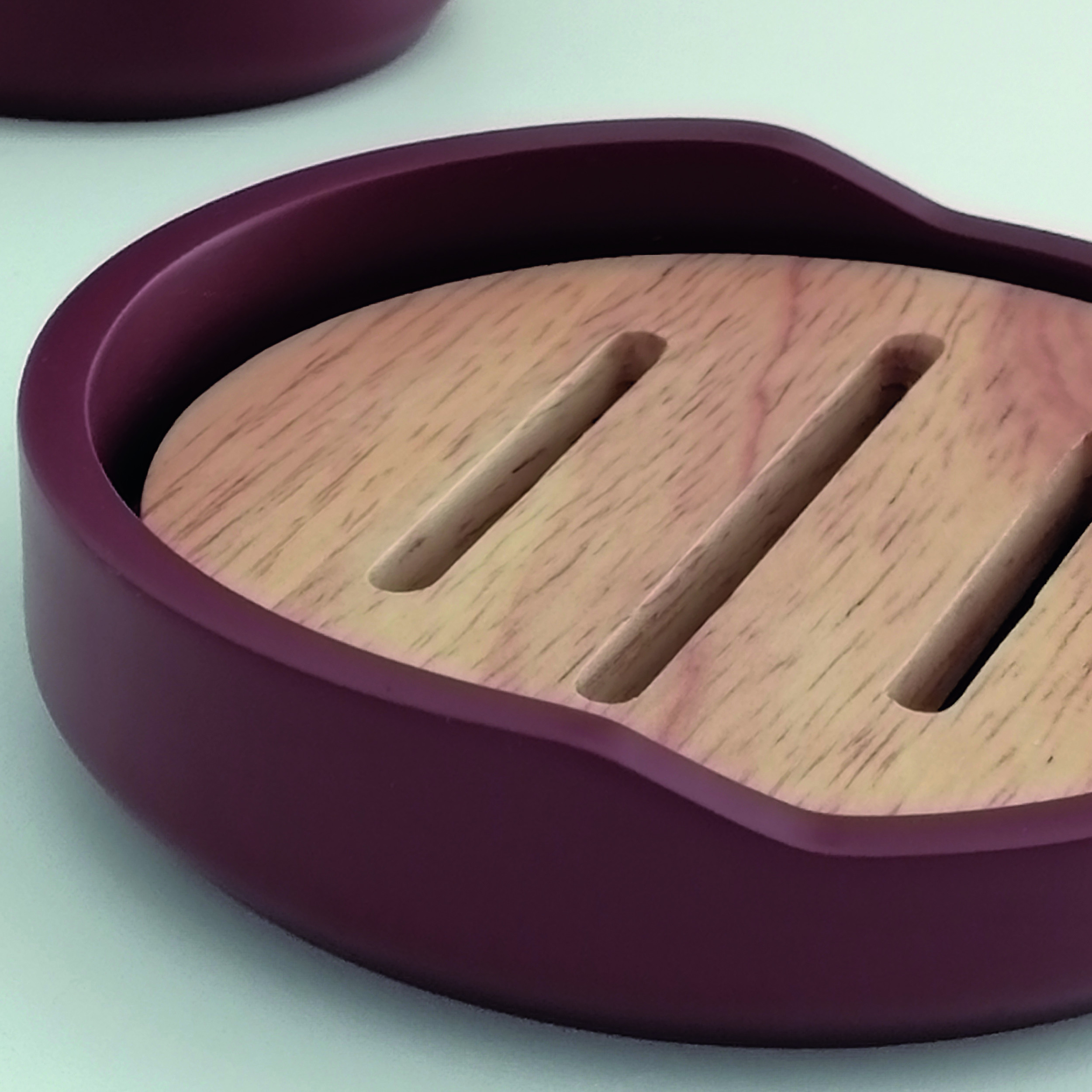 Jabonera de poliresina y madera SYBELLA berry Spirella