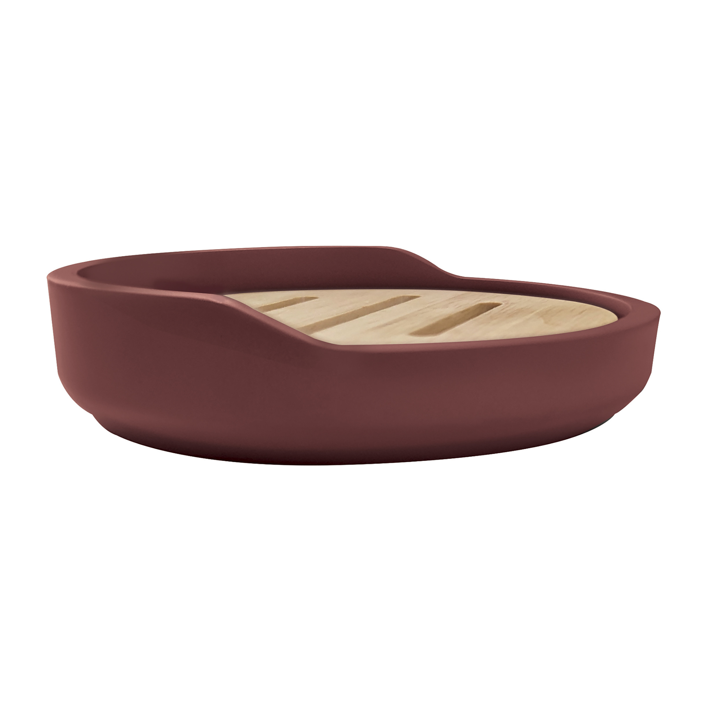 Porte-savon de la marque Spirella. Élégant et pratique, le porte savon de la gamme SYBELLA permet de maintenir un savon au propre tout en rajoutant une touche de modernité et de raffinement. La forme du support permet d'avoir accès facilement au savon. Particulièrement robuste et facile à nettoyer, sa matière garantit une longue durée de vie. Son design en bois et cappuccino offrent un environnement chaleureux et conviviale. S'adapte aux autres accessoires de salle de bain de la même série. Dimensions: 10.9X2.6cm Couleur: berry Matière: Polyrésine
