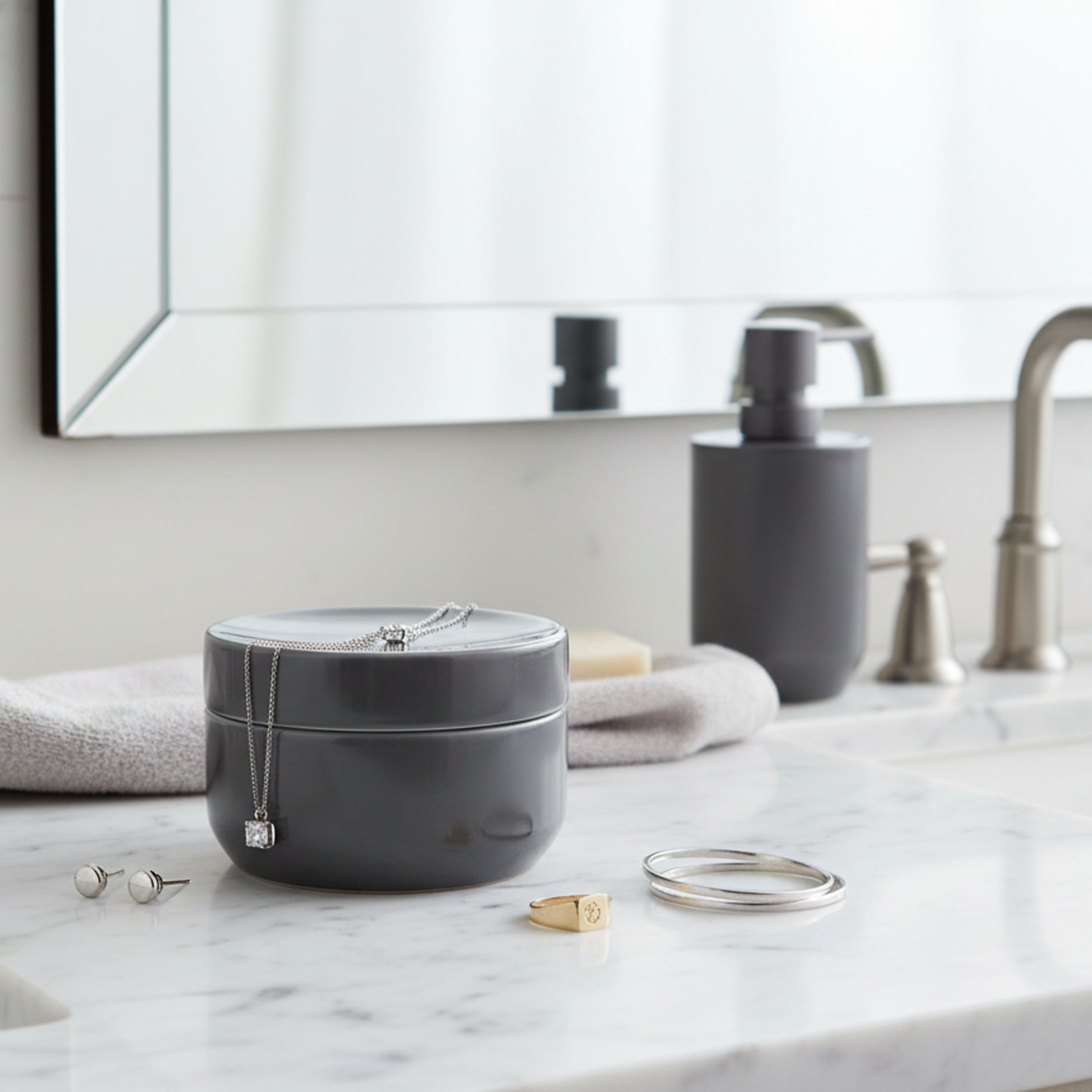 Ideal for storing care products such as cotton swabs, cotton balls or hair accessories. Of superior quality, this box fits with elegance and style in all bathrooms.
