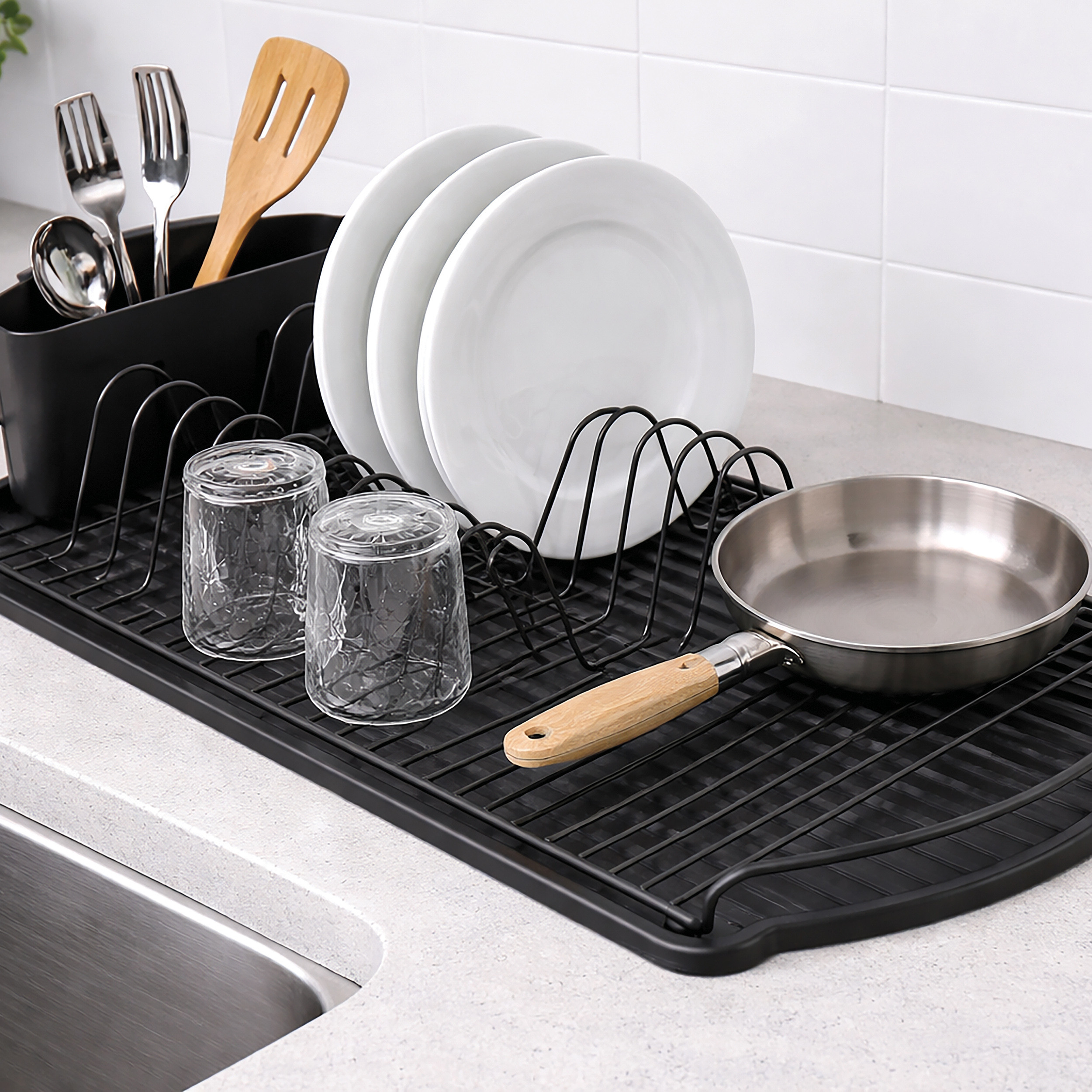 dish Drainer with Matte Black Steel Tray MSV