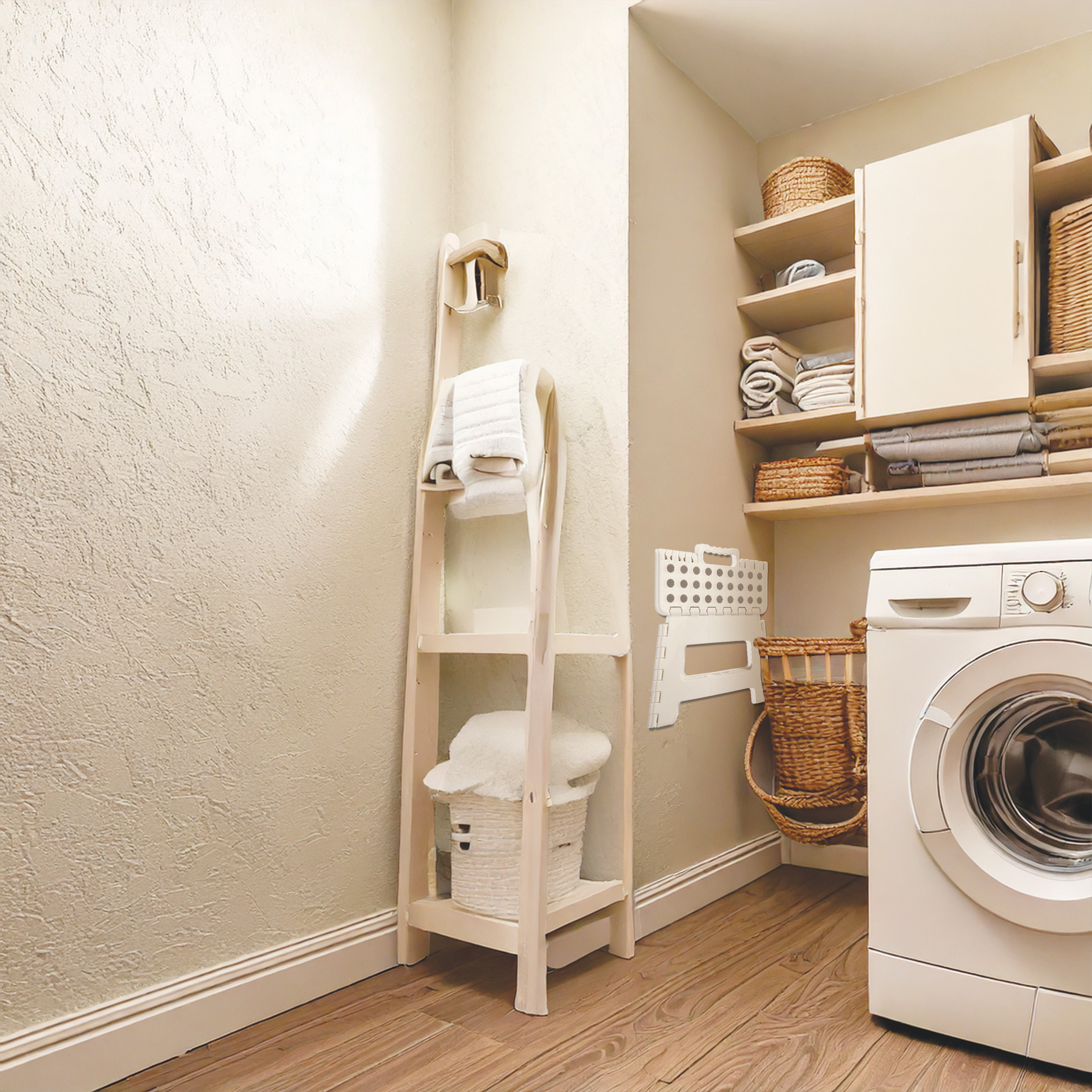 Ideale per bagno, cucina o WC, questo sgabello compatto è un accessorio indispensabile per l’uso quotidiano.